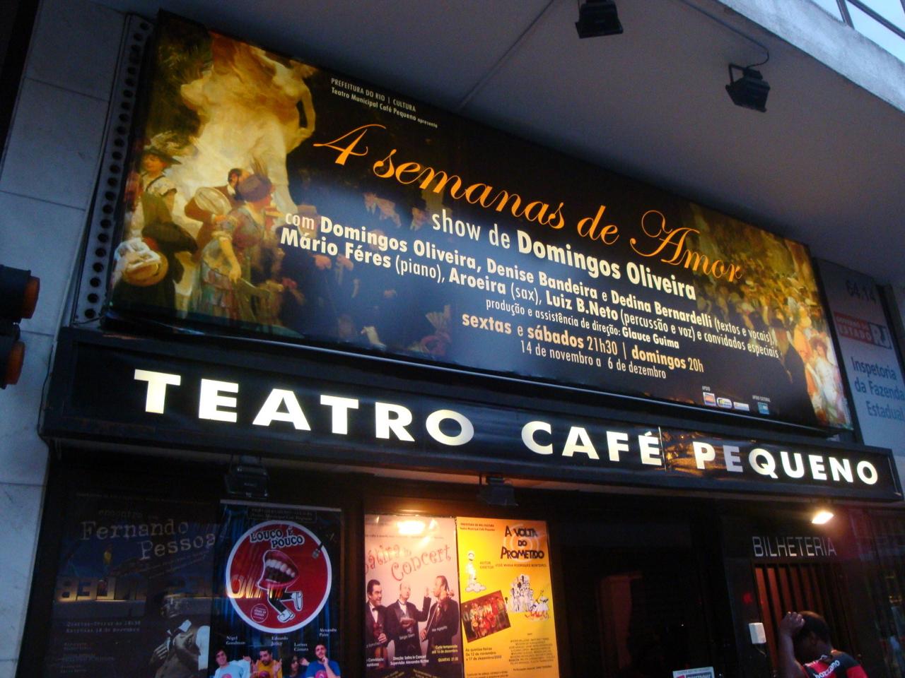 Formado por Domingos Oliveira, Dedina Bernardelli e Denise Bandeira, o trio 3D canta e fala sobre amor e cotidiano, em 4 Semanas de Amor apresentado no Teatro Café Pequeno. O grupo, acompanhado pelos músicos Mário Feres (piano), Aroeira (saxofone) e Luiz B. Neto (percussão), faz um show interativo e completamente novo.